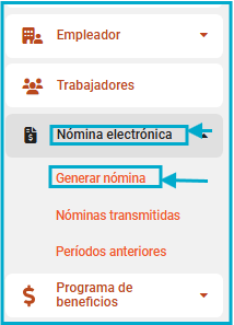 1. Ingresamos "Nomina electrónica" > "Generar nomina".