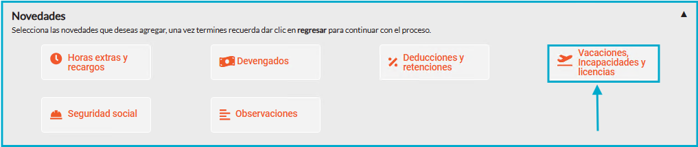 3. Seleccionamos la opción "vacaciones incapacidades y licencias".