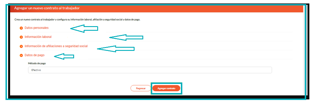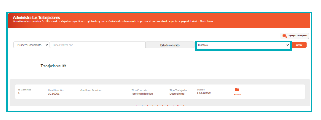 1. Para ingresar el nuevo contrato, debemos dar clic en "agregar trabajador"