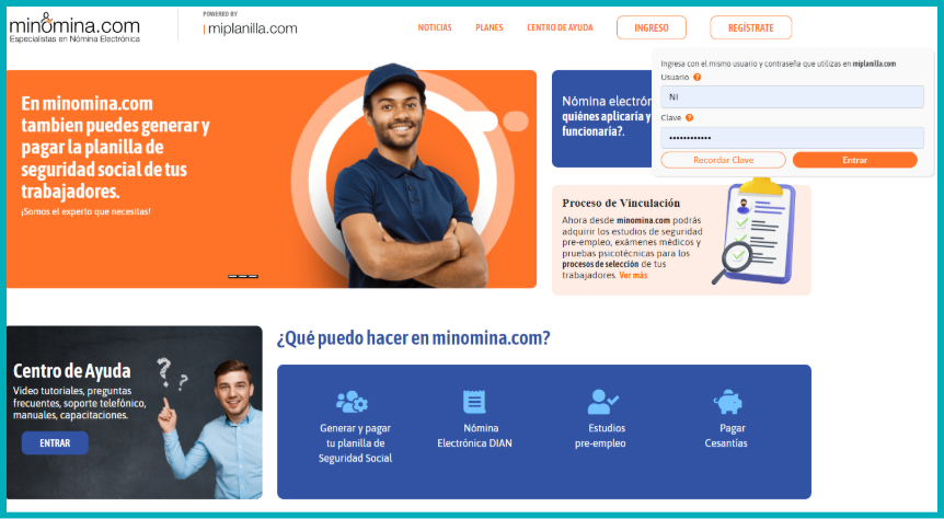1. Ingresar a la página www.minomina.com, colocar allí las credenciales para ingresar al portal
