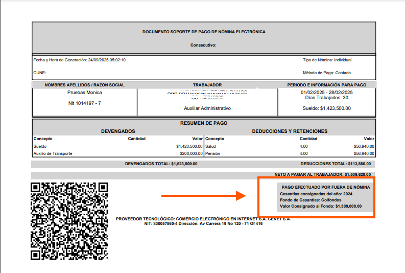 La novedad se ve reflejada en el pdf de cada trabajador, después de emitida la nomina a la DIAN.