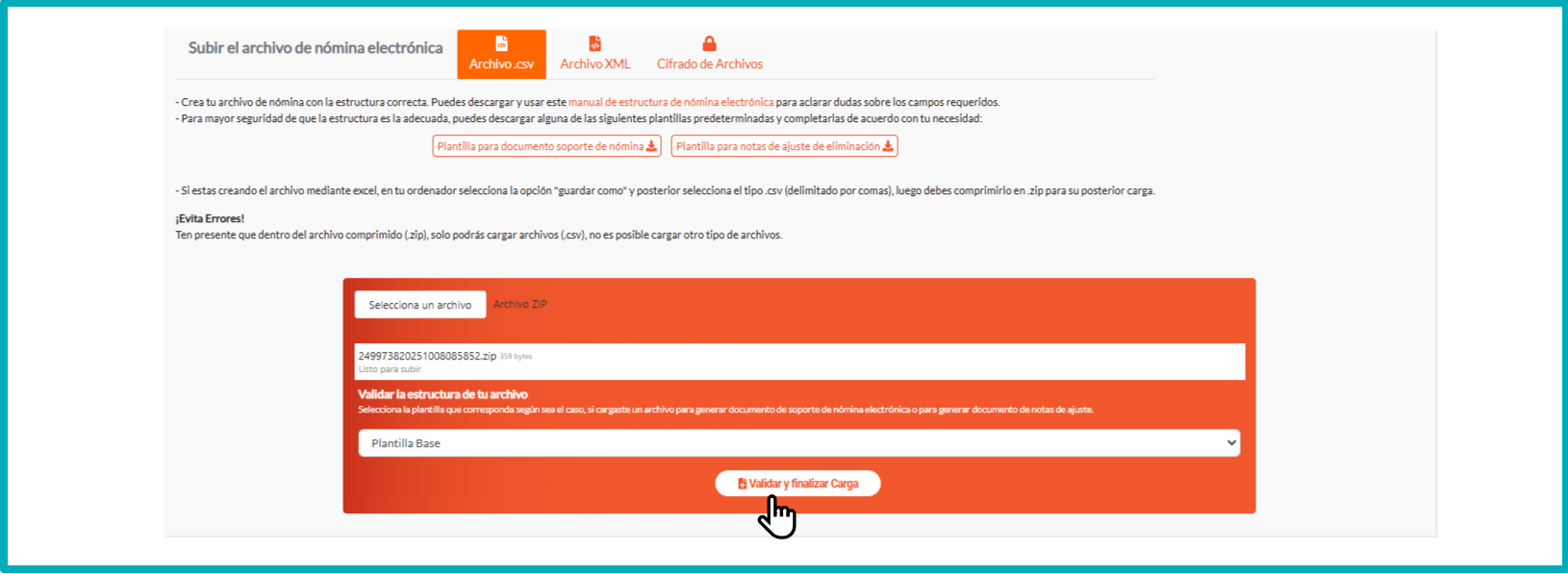 En este tutorial te mostramos el paso a paso para subir el archivo nómina electrónica en tres tipos de formato CSV, XML y Cifrado de Archivo