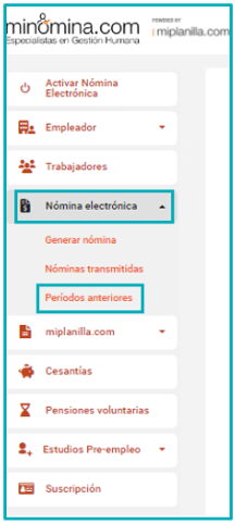 2. Al desplegar las opciones, dar clic en "Periodos anteriores"