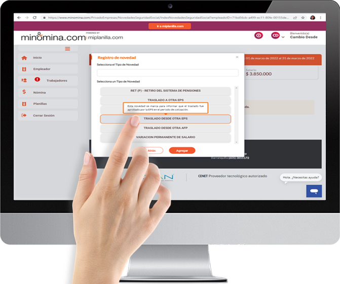 Esta novedad se marca para indicar que está en proceso el «traslado a otra EPS» en el período de cotización.