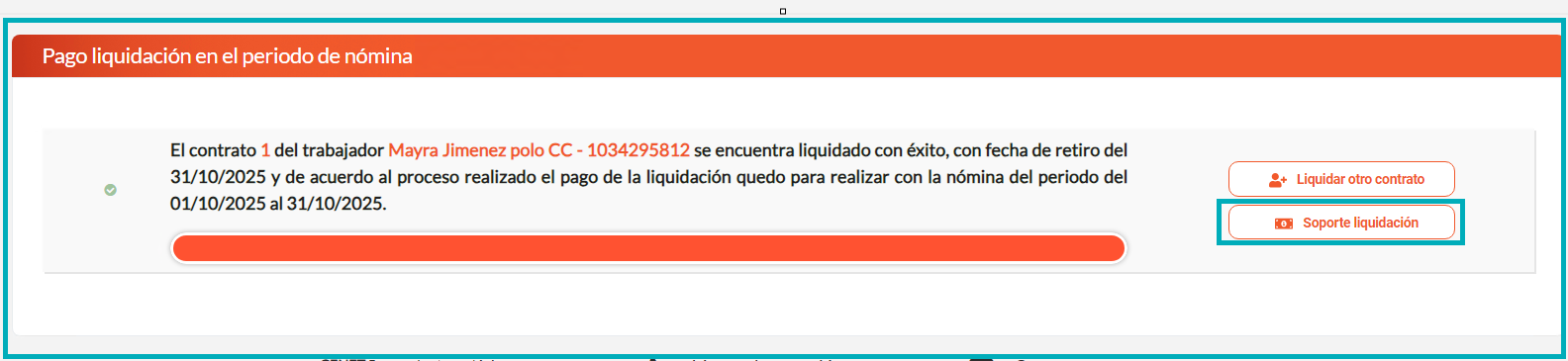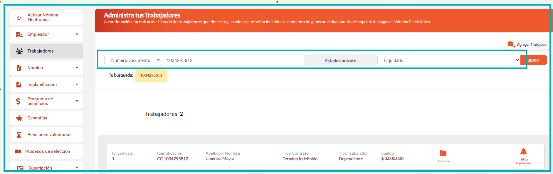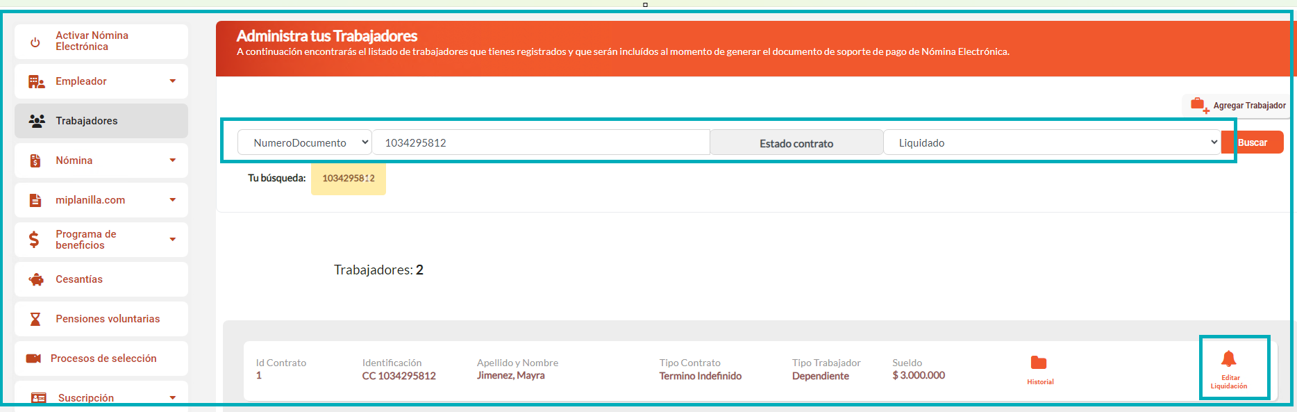4. Filtras al colaborador por número de documento y en estado liquidado