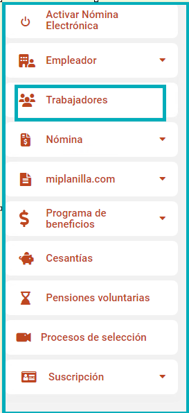 3. Al ingresar a la plataforma, dentro del menú principal se debe seleccionar la opción "TRABAJADORES"