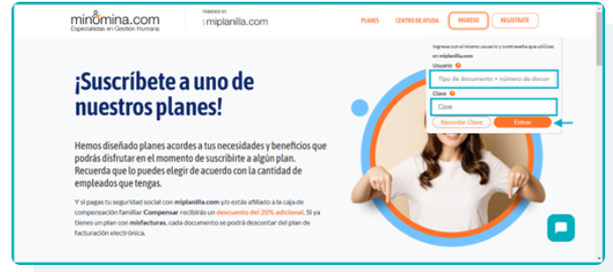 1. Accede a www.minomina.com con tu usuario y contraseña.