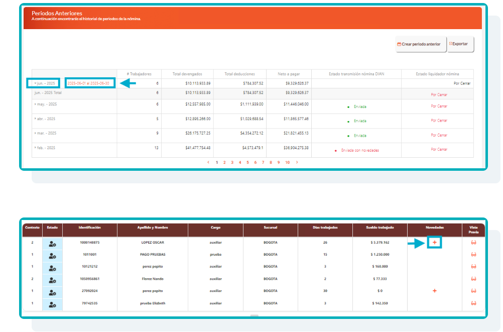 3.Después seleccionar el periodo y trabajador en el cual se va a reportar la novedad