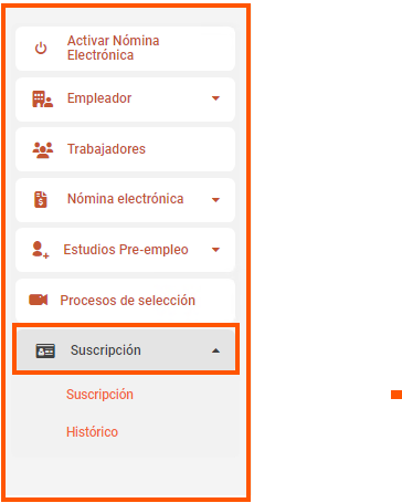 2. En el costado izquierdo de la pantalla encuentras el menu, ingresas al ultimo icono Suscripción.