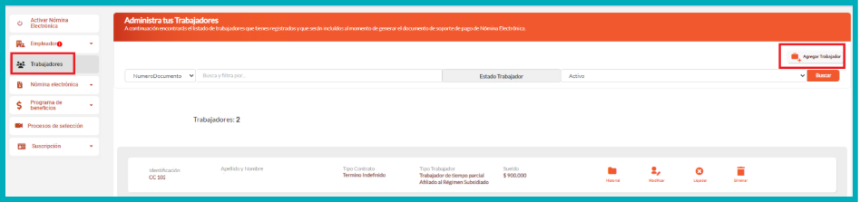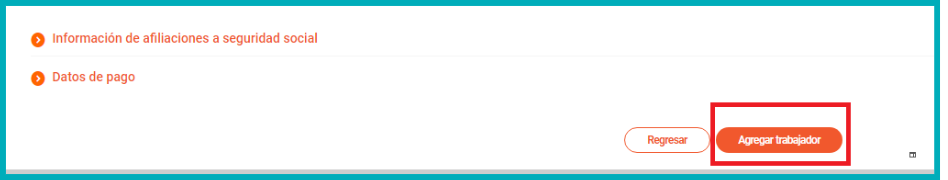 4. Debe terminar el registro con toda la información y dar clic en el botón agregar trabajador.