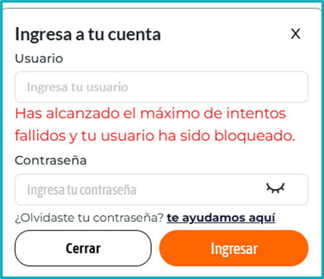 Cuando estamos intentando ingresar en la plataforma y olvidamos la contraseña o por error la colocamos diferente más de tres veces sale un aviso de "usuario o clave errado" el sistema de manera automática genera un bloqueo.