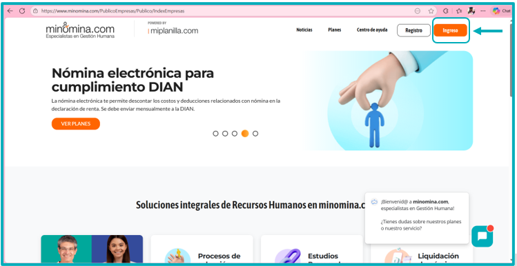1.Ingresamos a la plataforma: https://www.minomina.com/Publico/IndexEmpresas por la opción ingreso