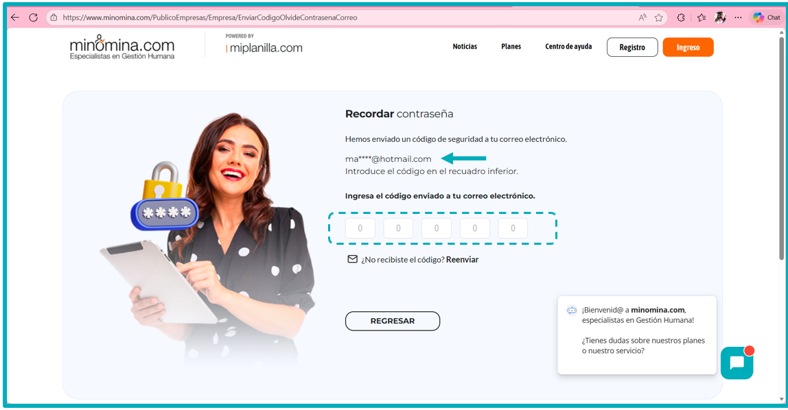 4. Te llegara un código al correo electrónico registrado y debes colocarlo en los recuadros